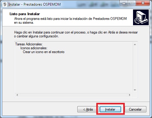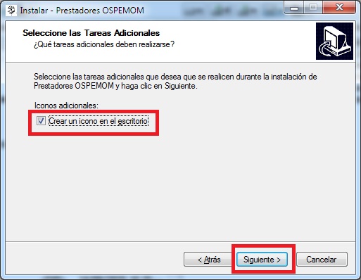 7- Tildar la opción "Crear icono en el escritorio" y hacer click en siguiente.