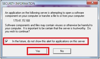 3- Otro Mensaje que es importante que sale por única vez, donde hay que autorizar la impresión con tildar y hacer click en "Yes"