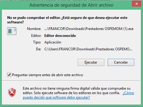 4- Una vez descargado puede ejecutar el archivo desde el mismo browser, debe aceptar el siguiente mensaje ".