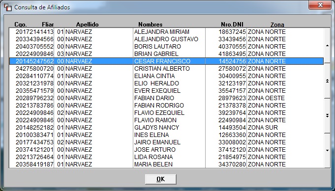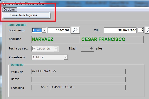 7- En esta opción podrá consultar los afiliados de la Obra Social ingresados o registrados.