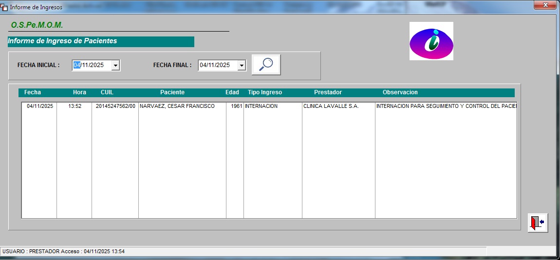 7- En esta opción podrá consultar los afiliados de la Obra Social ingresados o registrados.